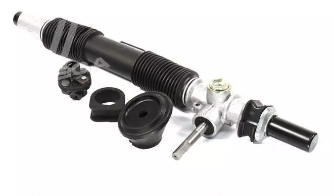 Рейка идет в сборе с карданчиком и крепежными втулками.