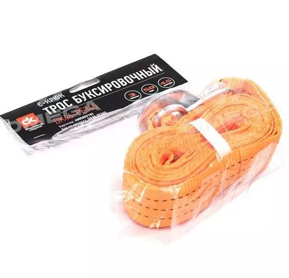 Трос буксирний 3т. 50мм. 4,5 м. С-крюк, Поліестер, помаранчевий, <ДК>